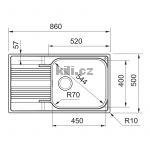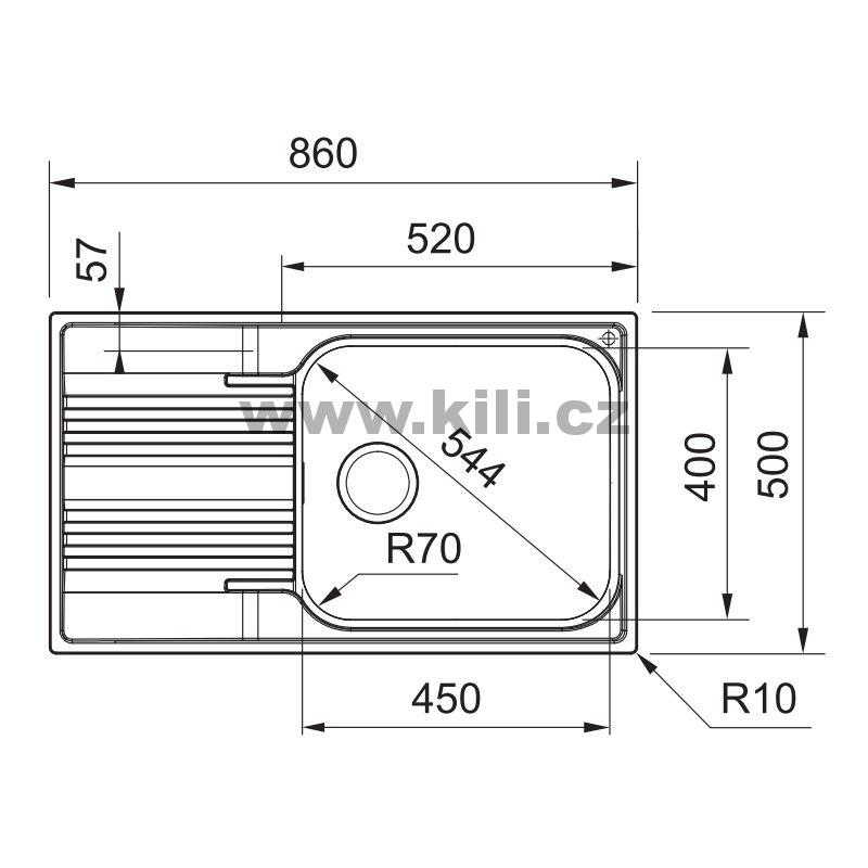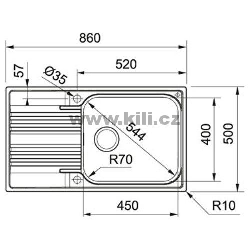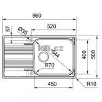 | Specifikace | Délka: 860 mm Šířka: 500 mm Skříňka: 600 mm Hloubka: 180 mm |