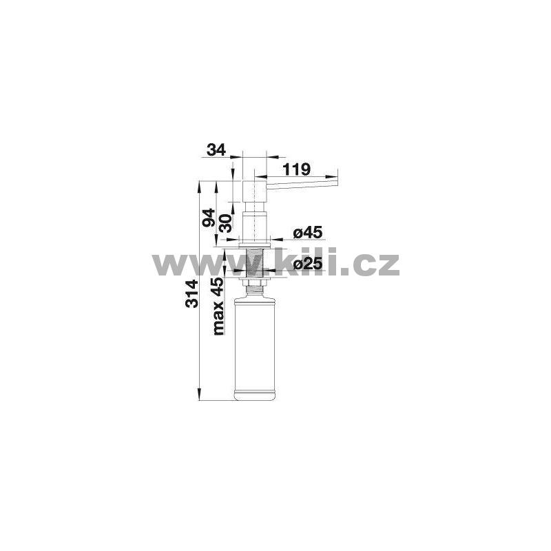 Pro tloušťku desky max. 45 mm