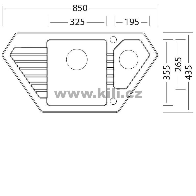 | Specifikace | Délka: 850 mm Šířka: 435 mm Hloubka: 180 mm Skříňka: 650 mm |
