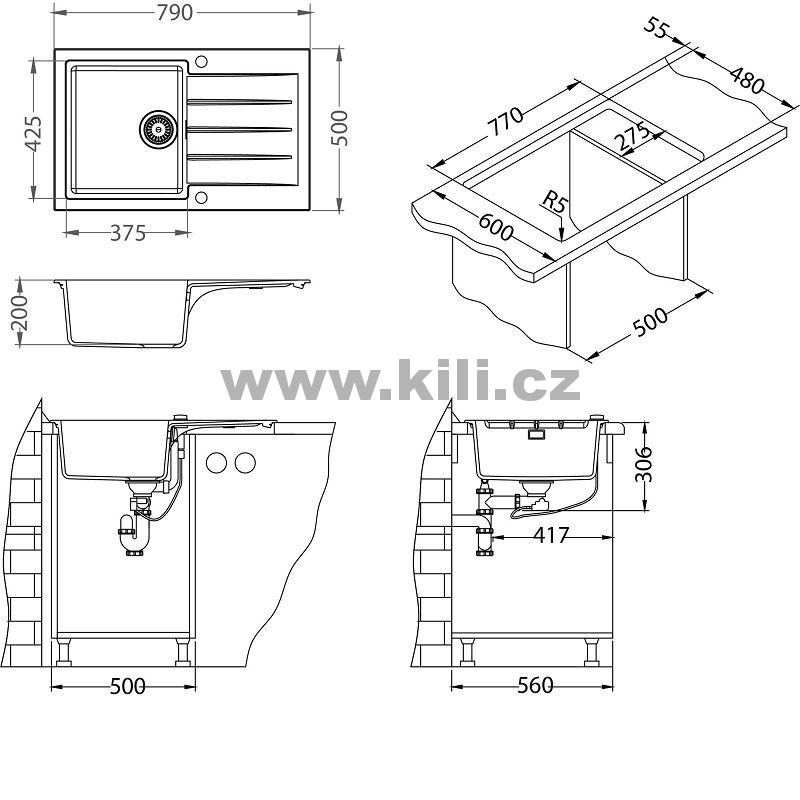 | Specifikace | Délka: 790 mm Šířka: 500 mm Hloubka: 200 mm Skříňka: 500 mm |