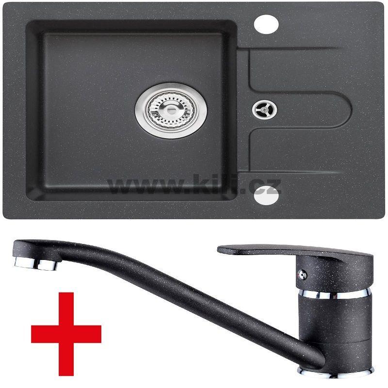Set Dřez Cortina 20 3 1/2" carbon 91 + baterie Nina carbon