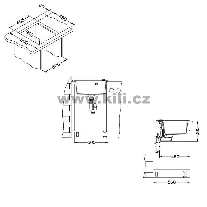 Dřez je dodáván včetně příslušenství.