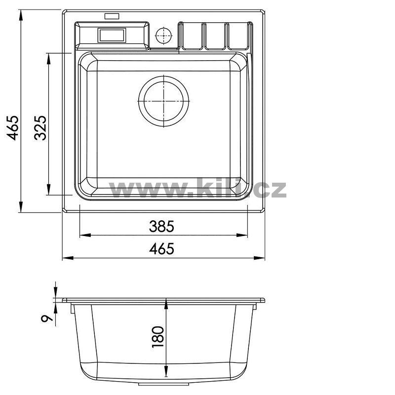 | Specifikace | Délka: 465 mm Šířka: 465 mm Hloubka: 180 mm |
