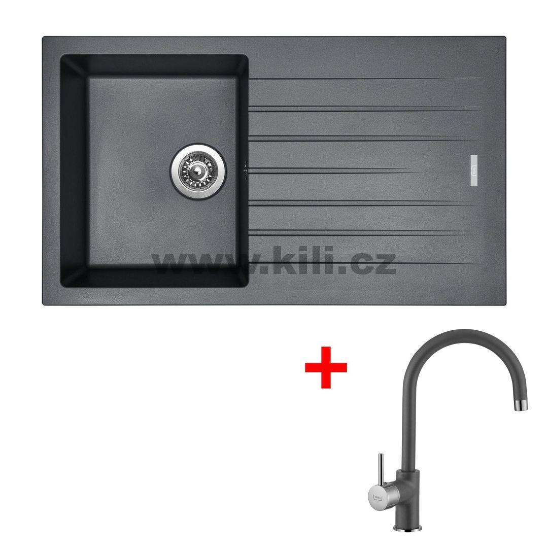 Set dřez Perfecto 860 3 1/2“ Titanium + baterie Vitalia Titanium