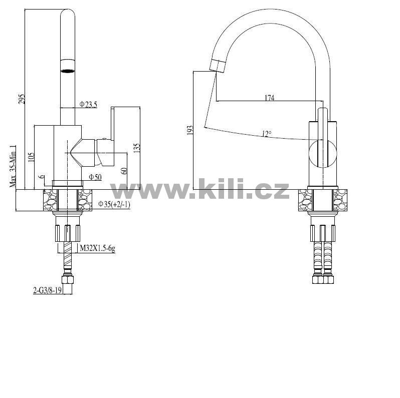Set Dřez Rock 30 I 3 1/2"concrete 81 + baterie Tonia concrete