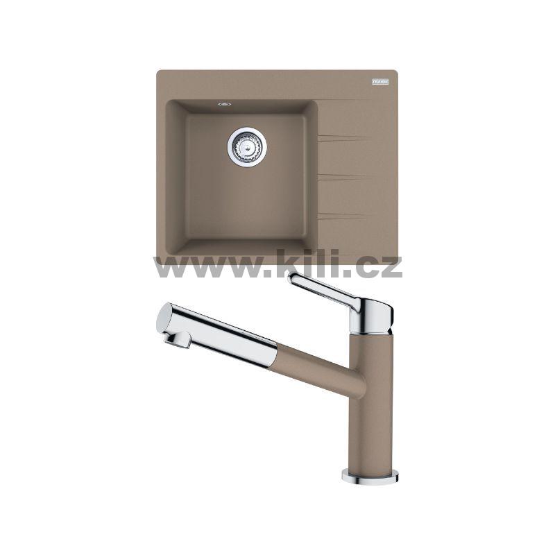 Set G215 dřez CNG 611-62 TL/2 kašmír, odkapávací plocha pravo + baterie FC 3055.424 ORBIT chrom/kašmír