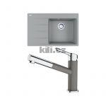 Set G227 dřez CNG 611-78 TL/7 šedý kámen, odkapávací plocha vlevo + baterie FC 3055.084 ORBIT chrom/šedý kámen