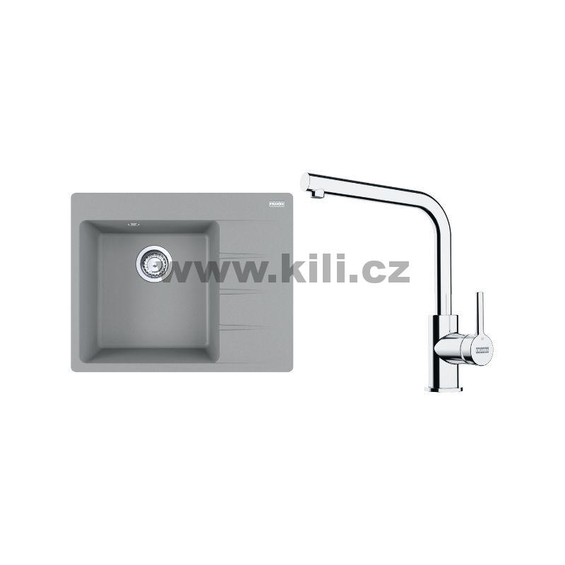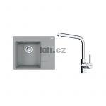 Set G249ŠK dřez CNG 611-62 TL/2 šedý kámen, odkapávací plocha vpravo + baterie FS 3230.031 LINA SMART chrom