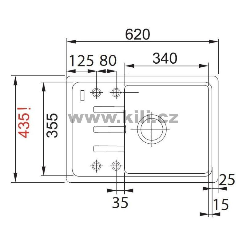 | Specifikace | Délka: 620 mm Šířka: 435 mm Hloubka: 200 mm Skříňka: 450 mm |