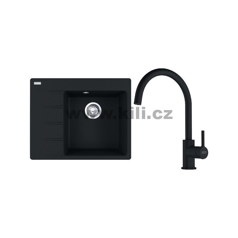 Set G269MČ dřez CNG 611-62 TL/7 matná černá, odkapávací plocha vlevo + baterie FC 6018.901 LINA matná černá