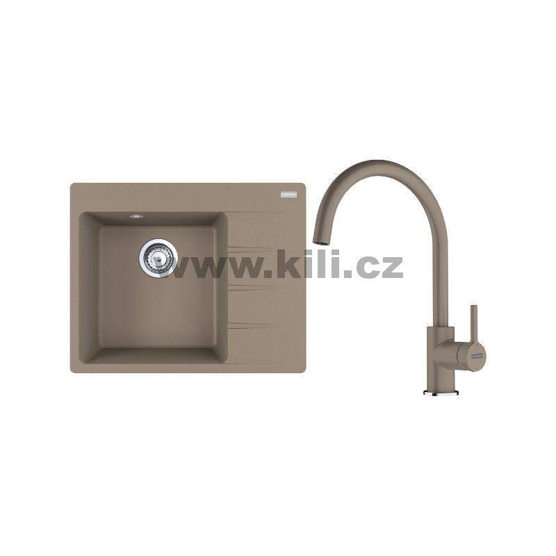 Set G270KA dřez CNG 611-62 TL/2 kašmír, odkapávací plocha vpravo + baterie FC 6018.424 LINA kašmír