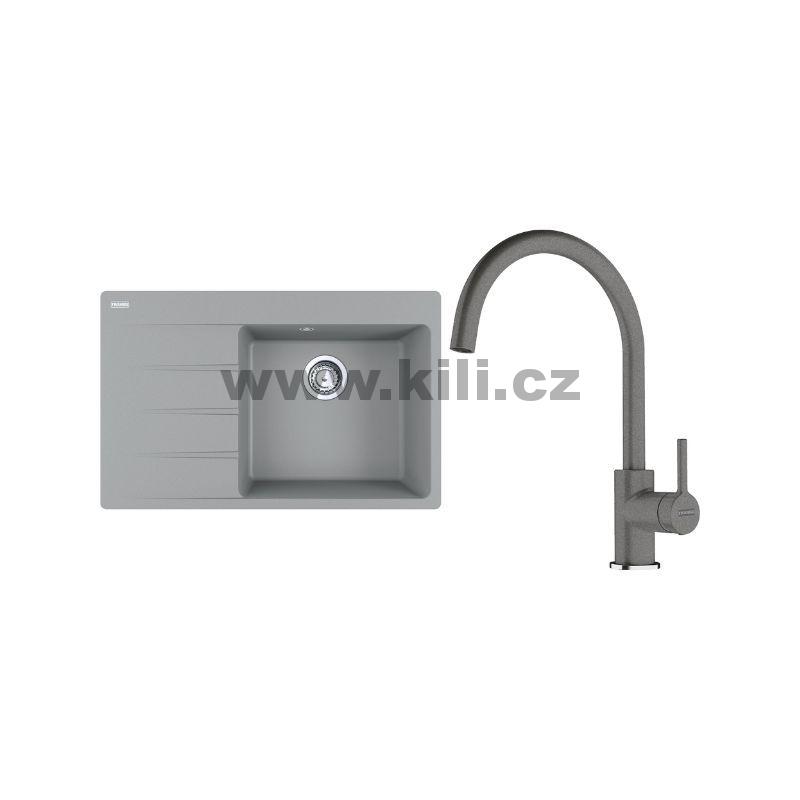 Set G271ŠK dřez CNG 611-78 TL/7 šedý kámen, odkapávací plocha vlevo + baterie FC 6018.084 LINA šedý kámen