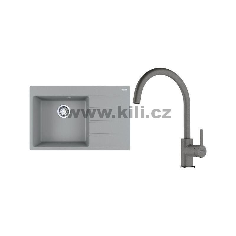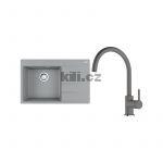 Set G272ŠK dřez CNG 611-78 TL/2 šedý kámen, odkapávací plocha vpravo + baterie FC 6018.084 LINA šedý kámen