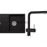 Součástí balení je kuchyňská baterie Schock Epos Nero, která má barevnou variantu Nero, ladící s dřezy Schock Cristalite. Je to klasická tlaková baterie určená pro připojení k vodnímu řádu nebo ohřívači. Baterie má výšku 274 mm, připojovací hadičky o délce 45 cm a otočnost o 360°. Disponuje také funkcí úspory vody.Obsah Balení