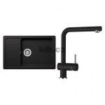 Součástí balení je kuchyňská baterie Schock Epos.120 Nero, která má barevnou variantu Nero, ladící s dřezy Schock Cristalite. Je to klasická tlaková baterie určená pro připojení k vodnímu řádu nebo tlakovému ohřívači. Baterie má výšku 274 mm, připojovací hadičky o délce 45 cm a otočnost o 180°. Disponuje také funkcí úspory vody.Obsah Balení