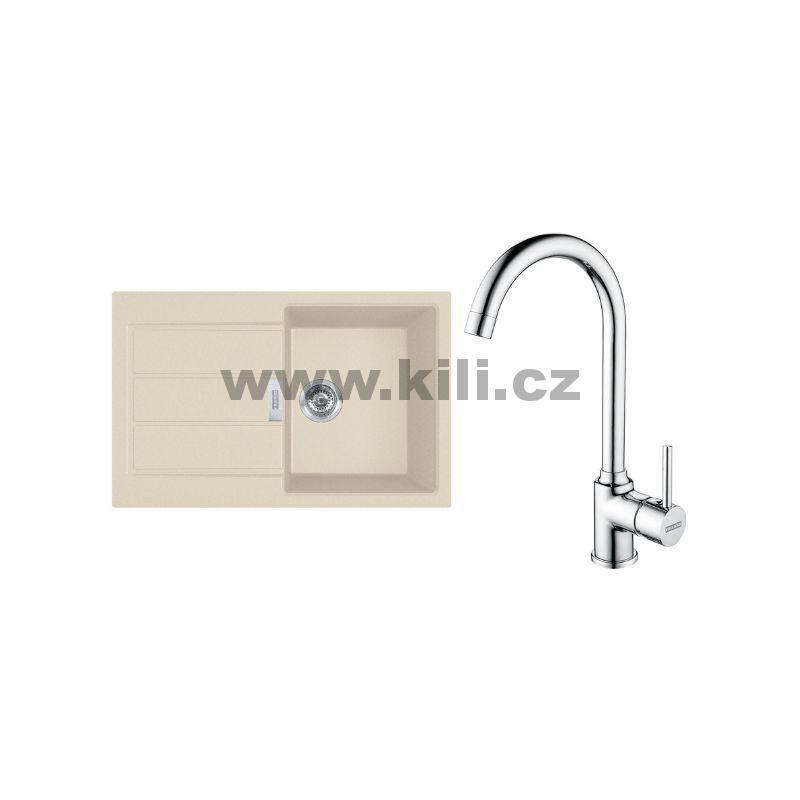 Set T104BE dřez S2D 611-78 béžová + baterie FP 9000.031 chrom