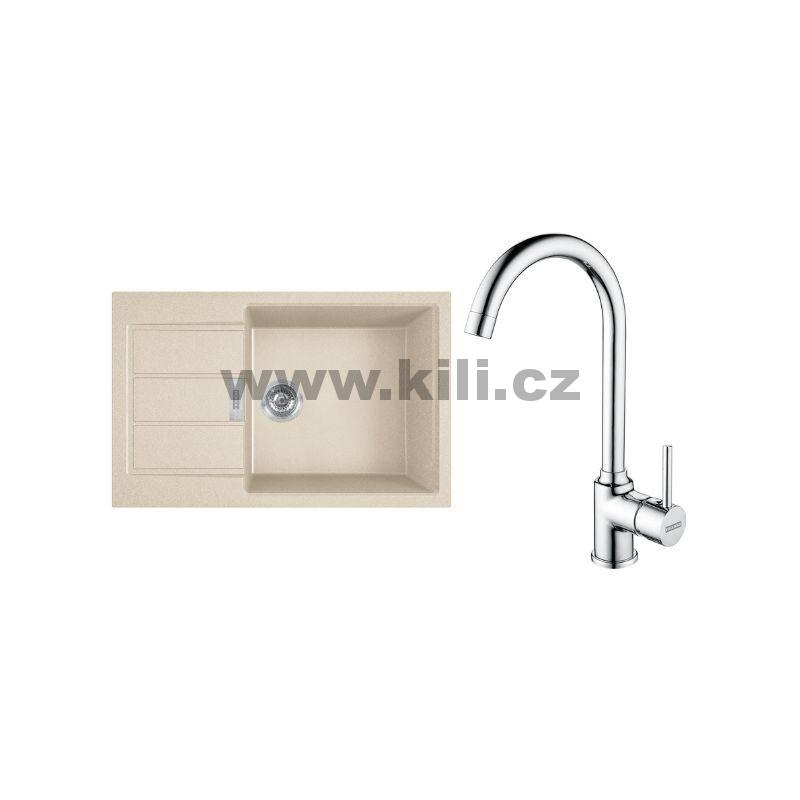 Set T106BE dřez S2D 611-78 XL béžová + baterie FP 9000.031 chrom