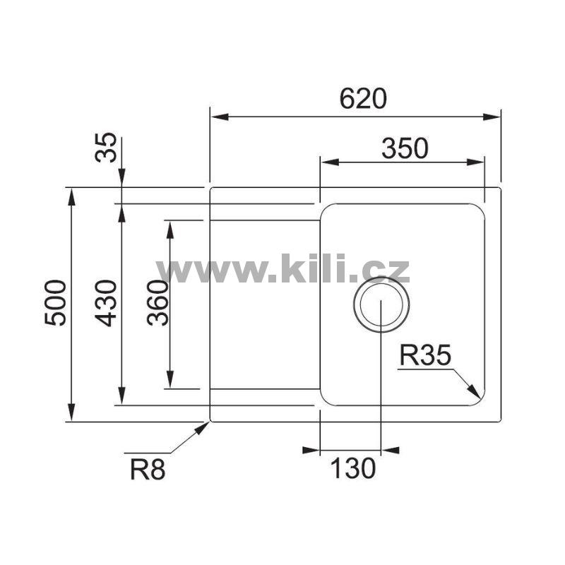 | Specifikace | Délka: 620 mm Šířka: 500 mm Hloubka: 180 mm Skříňka: 450 mm |