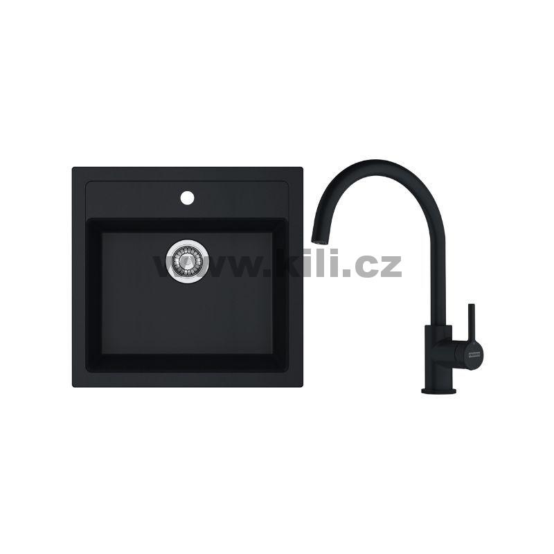 Set T122Č dřez SID 610 černá + baterie FC 6018.901 LINA matná černá