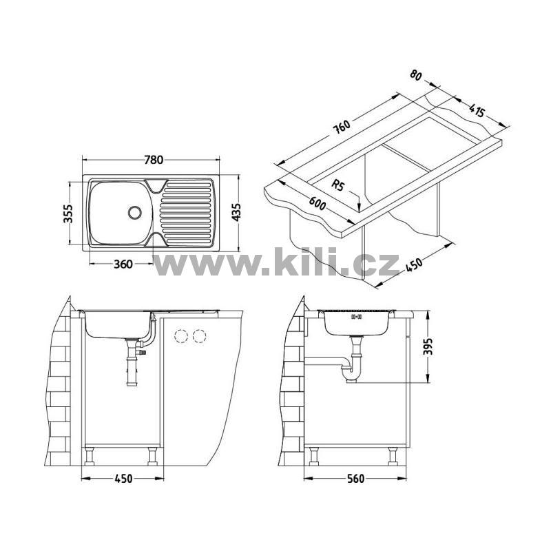 | Specifikace | Délka: 780 mm Šířka: 435 mm Hloubka: 150 mm Skříňka: 450 mm |