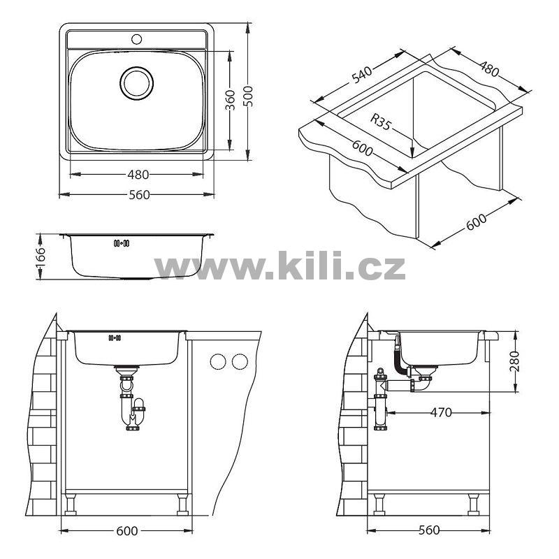 Dřez je dodáván včetně příslušenství.