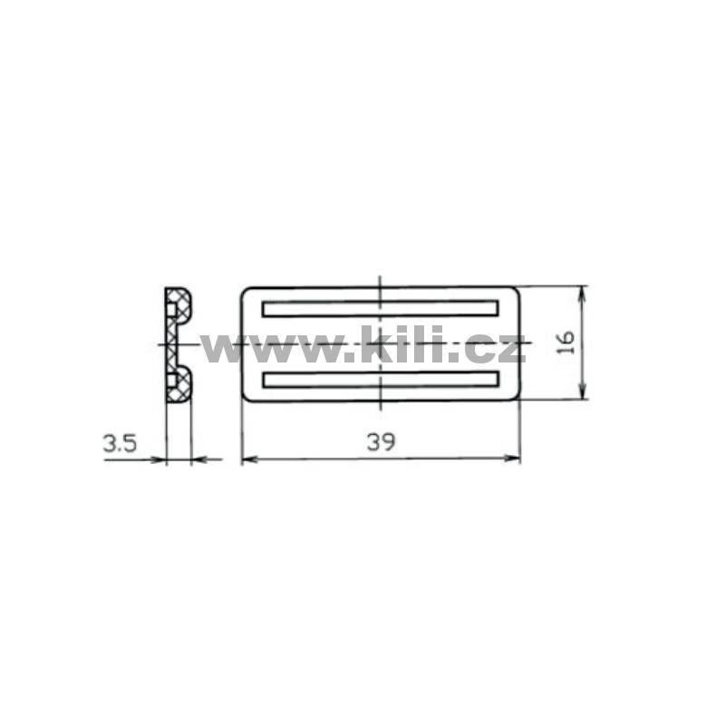 | Specifikace | Délka: 39 mm Šířka: 16 mm Nosnost: 3.5 mm |