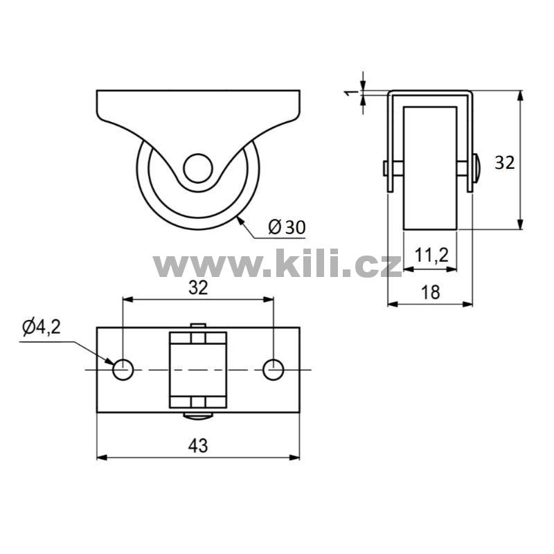 Pevné kolečko vhodné např. pro válendy, pojezd nábytku atd.