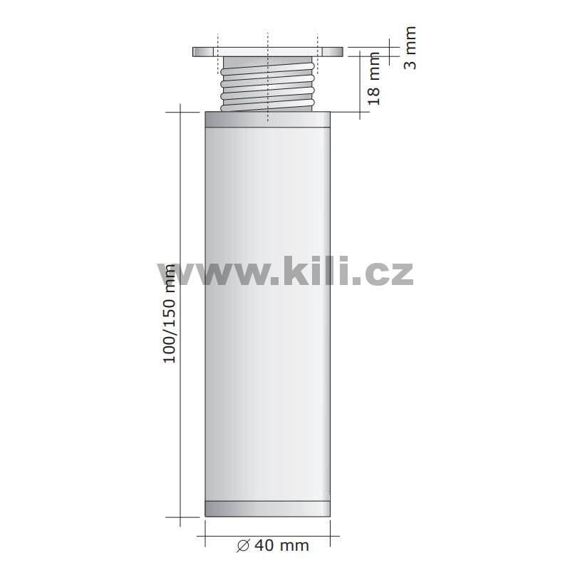 | Specifikace | Výška: 150 mm Průměr: 40 mm Nosnost: 50 kg |
