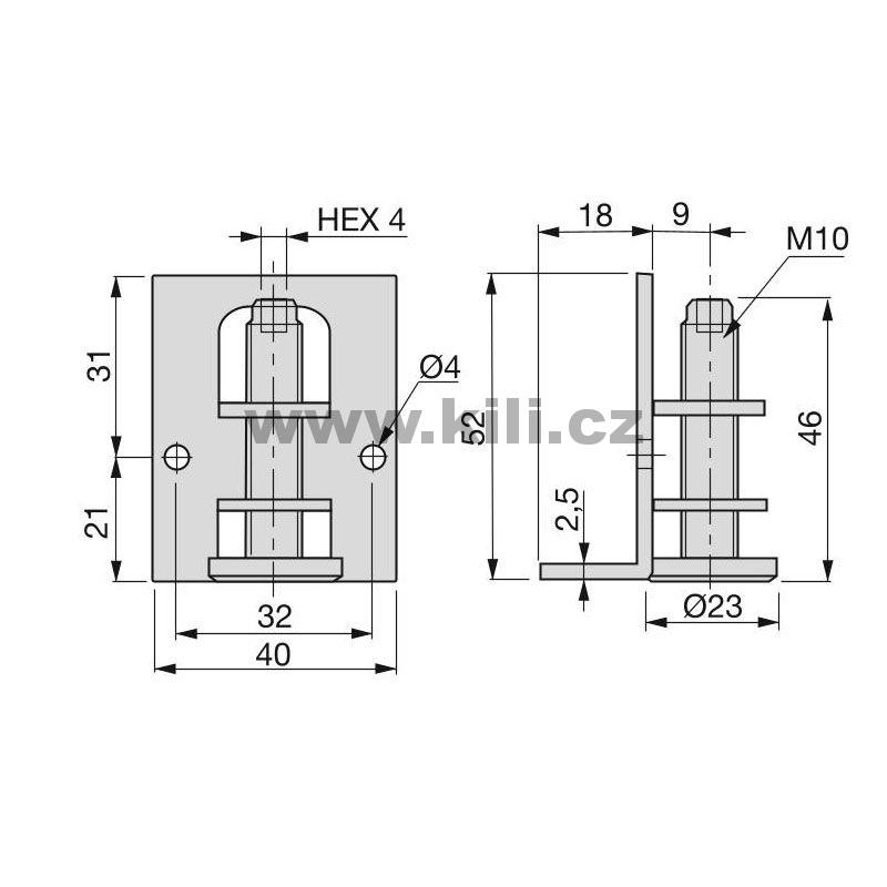 Stabilizační vzpěra M10 O23 s krytem a držákem, zinek bílý