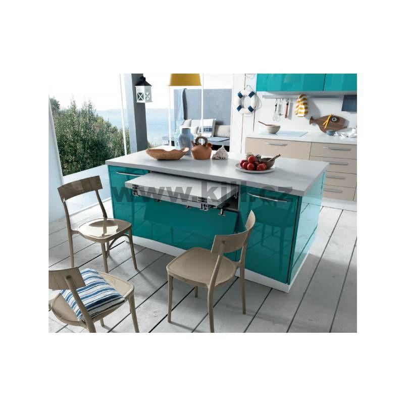 Výsuvná stolová konstrukce vhodná pro malé byty. Lze ji složit do zásuvky. Vyžaduje světlou hlubku skříňky 540 mm. Pro skříňky s šířkou od 300 do 1200 mm. Délka vysunuté části: 750 mm