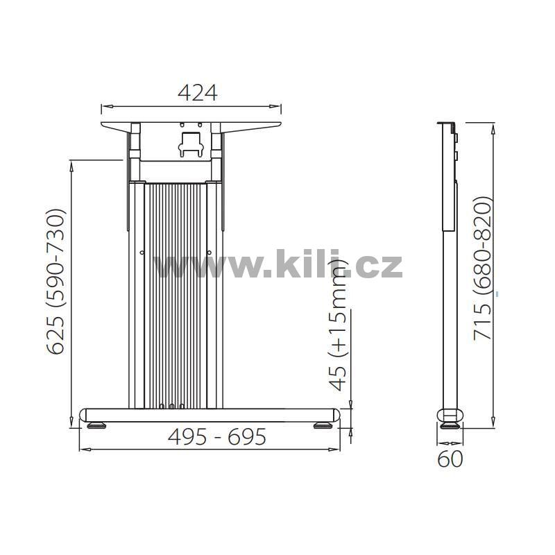 Noha s pevnou výškou. Nohy COMO jsou vyrobeny z kovu. Sloupky jsou umístěny excentricky. Všechny COMO nohy mají možnost rektifikace. Mezi vertikálními kovovými profily jsou umístěna odnímatelná plastová víka, která umožňují umístění vodičů.