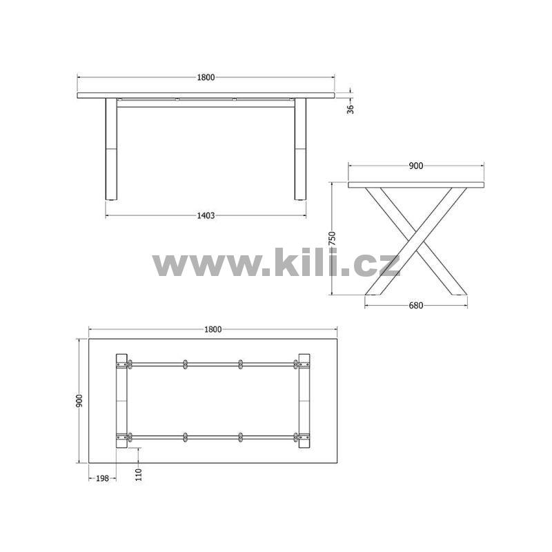 | Specifikace | Výška: 750 mm Šířka: 1403 mm |