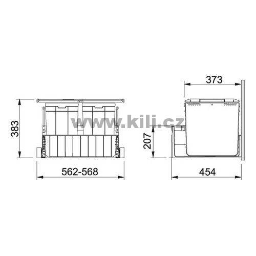 | Specifikace | Výška: 383 mm Šířka: 562 mm Hloubka: 454 mm Skříňka: 600 mm |