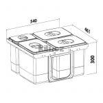 | Specifikace | Výška: 300 mm Šířka: 540 mm Hloubka: 461 mm Skříňka: 600 mm |