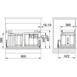 Odpadkový koš Sorter 350-90 Composta, k vložení, 40l + 22l + 5,5l