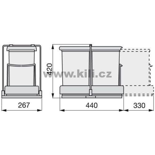 | Specifikace | Výška: 420 mm Šířka: 267 mm Hloubka: 440 mm Skříňka: 400 mm |