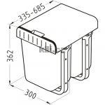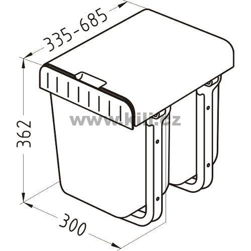 | Specifikace | Výška: 362 mm Šířka: 300 mm Hloubka: 685 mm Skříňka: 350 mm |