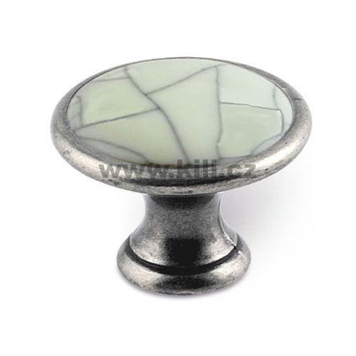 Knopka 1700-29 ZN29 PC5 starostříbro/porcelán béžový praskaný