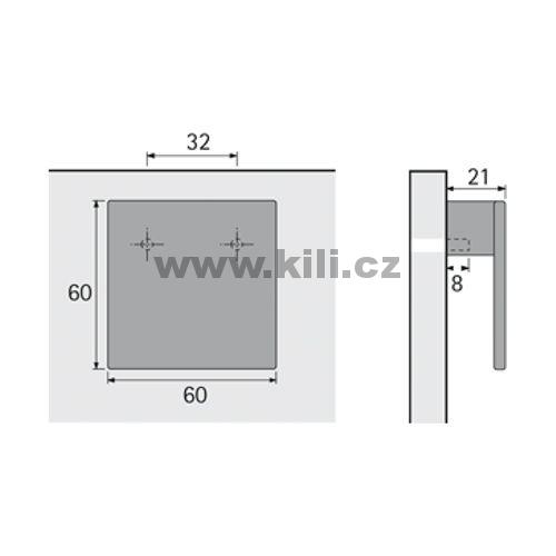 | Specifikace | Délka: 60 mm Šířka: 60 mm Rozteč otvorů: 32 mm |