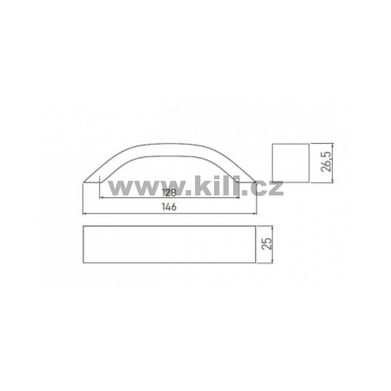 | Specifikace | Rozteč otvorů: 128 mm Délka: 146 mm Šířka: 25 mm Hloubka: 26,5 mm |
