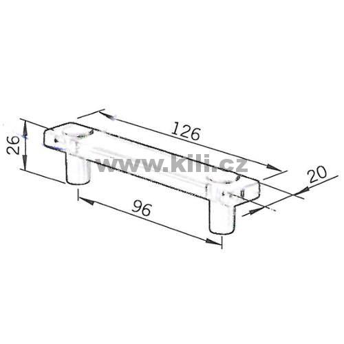 | Specifikace | Výška: 26 mm Šířka: 20 mm Rozteč otvorů: 96 mm Délka: 126 mm |