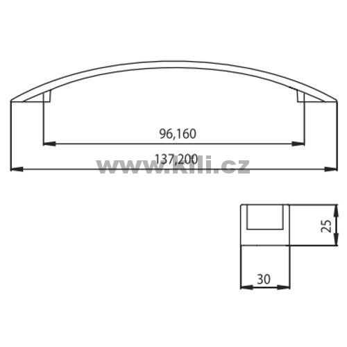 | Specifikace | Délka: 137 mm Rozteč otvorů: 96 mm Šířka: 30 mm Hloubka: 26 mm |