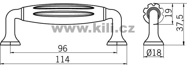 | Specifikace | Rozteč otvorů: 96 mm Délka: 114 mm Šířka: 18 mm Hloubka: 37 mm |