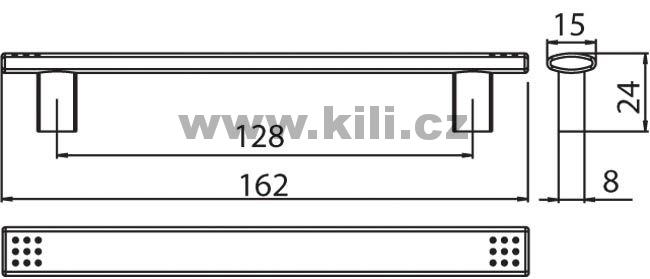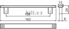 | Specifikace | Rozteč otvorů: 128 mm Délka: 162 mm Šířka: 15 mm Hloubka: 24 mm |