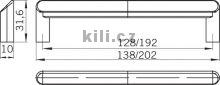 | Specifikace | Rozteč otvorů: 128 mm Délka: 137 mm Šířka: 10 mm Hloubka: 31 mm |