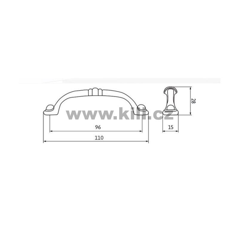 | Specifikace | Rozteč otvorů: 96 mm Délka: 110 mm Šířka: 14 mm Hloubka: 28 mm |