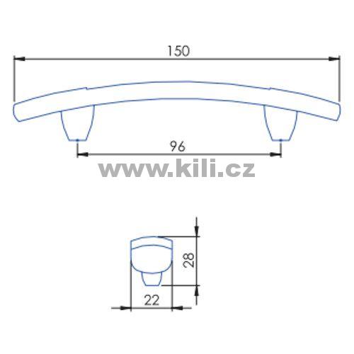 | Specifikace | Délka: 149 mm Rozteč otvorů: 96 mm Šířka: 22 mm Hloubka: 27 mm |