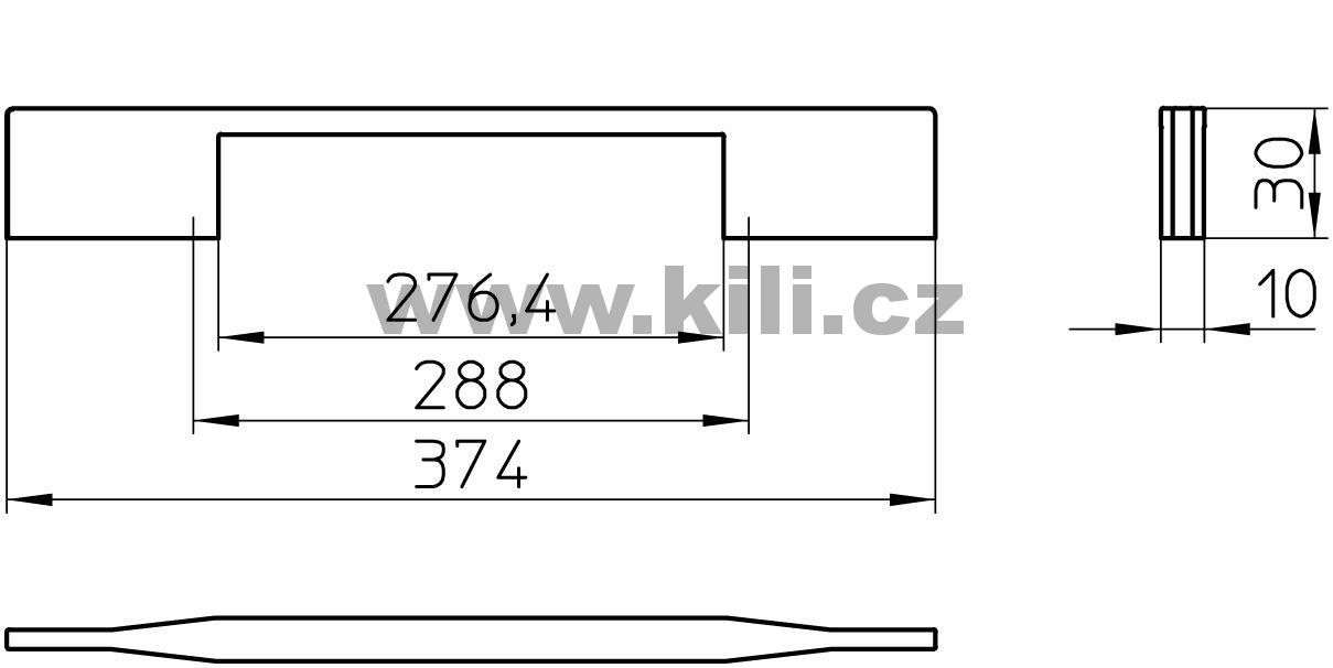 | Specifikace | Rozteč otvorů: 288 mm Délka: 374 mm Šířka: 10 mm Hloubka: 30 mm |