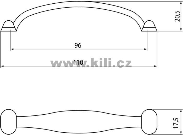 | Specifikace | Rozteč otvorů: 96 mm Délka: 110 mm Šířka: 18 mm Hloubka: 21 mm |