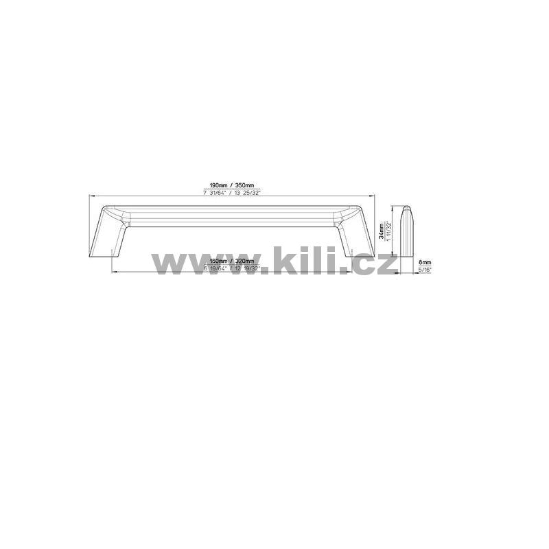 | Specifikace | Rozteč otvorů: 160 mm Délka: 190 mm Šířka: 8 mm Hloubka: 34 mm |
